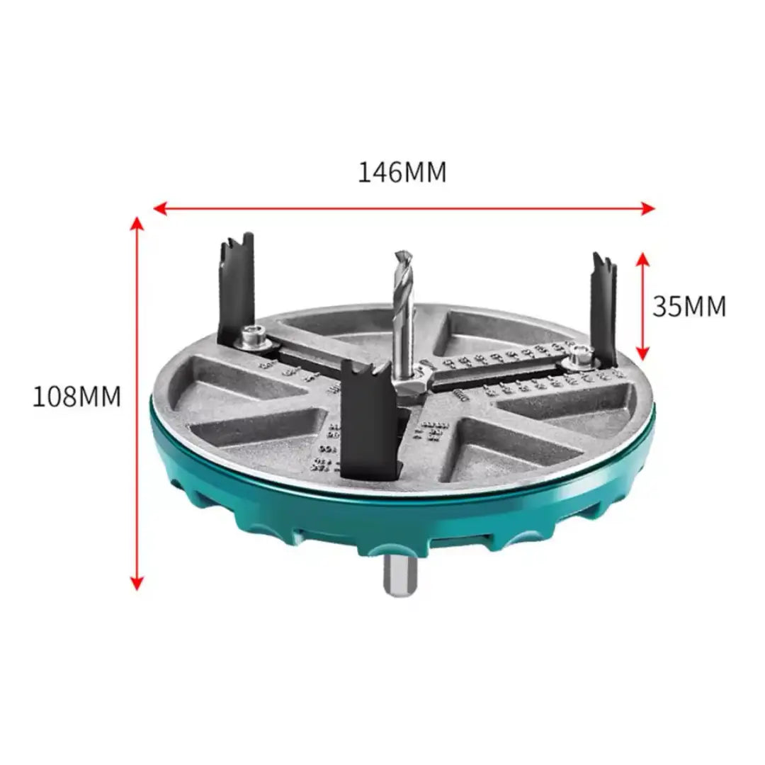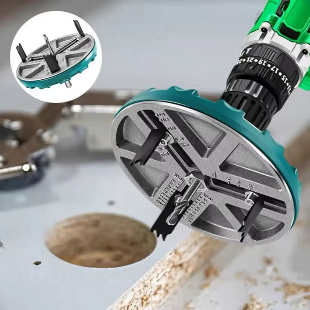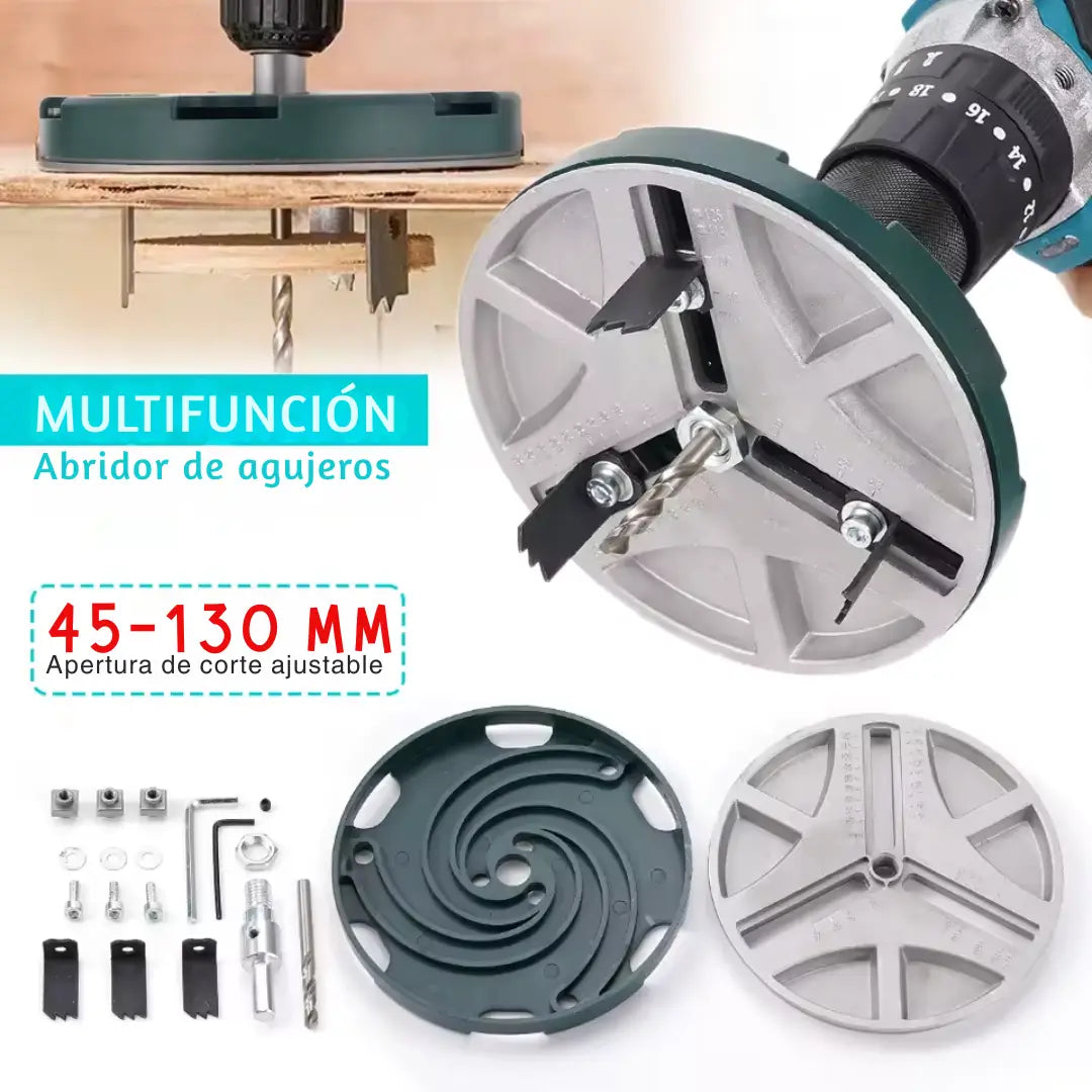 Un adaptador ajustable para taladro que convierte cualquier herramienta básica en una máquina profesional de cortes circulares precisos, rápidos y sin complicaciones.