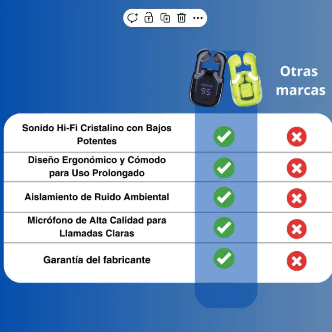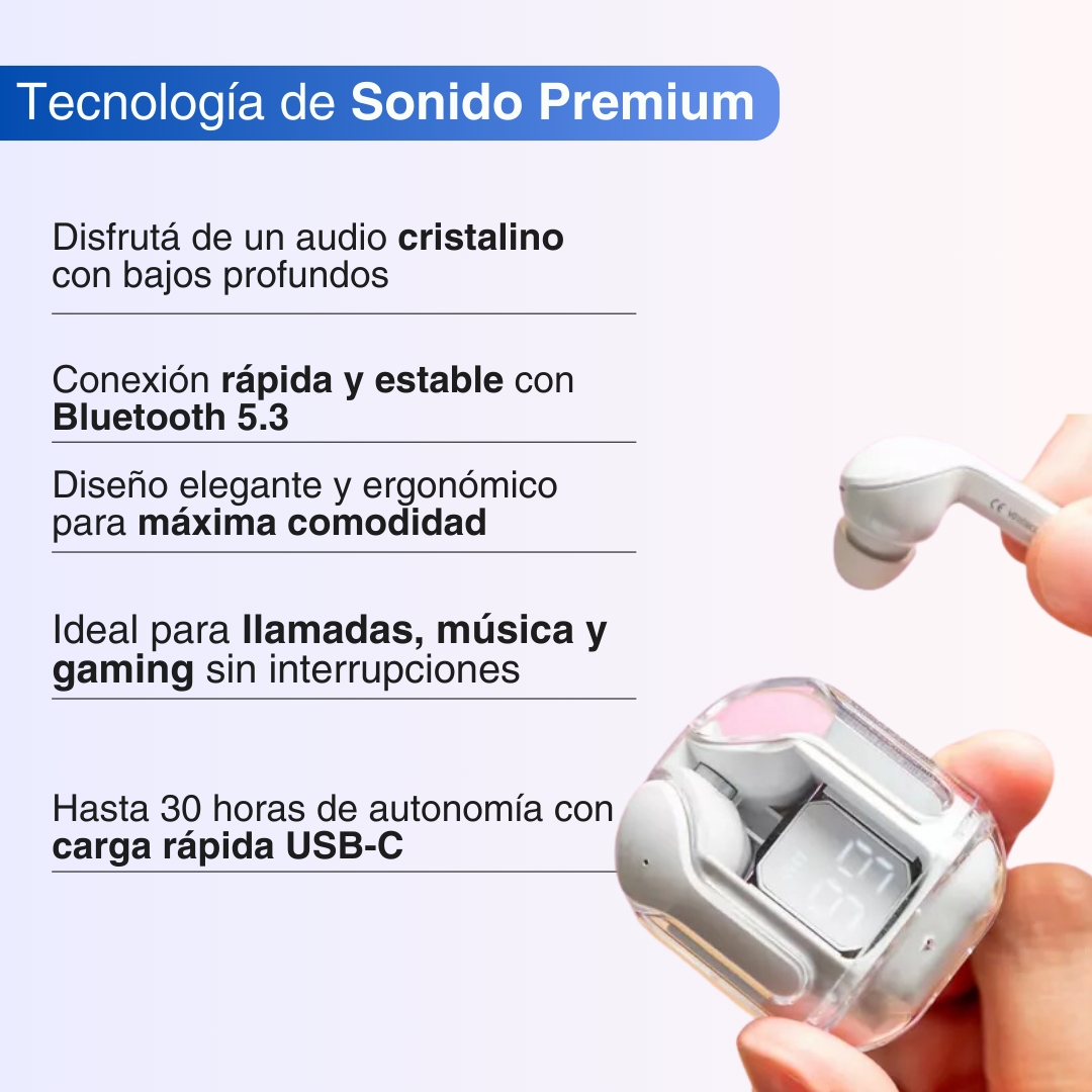 ¡LosAuriculares Crystalixson la respuesta! Diseñados para ofrecerte una experiencia auditiva envolvente, estos auriculares TWS (True Wireless Stereo) te sumergirán en tu música favorita, podcasts y llamadas con una claridad sorprendente.