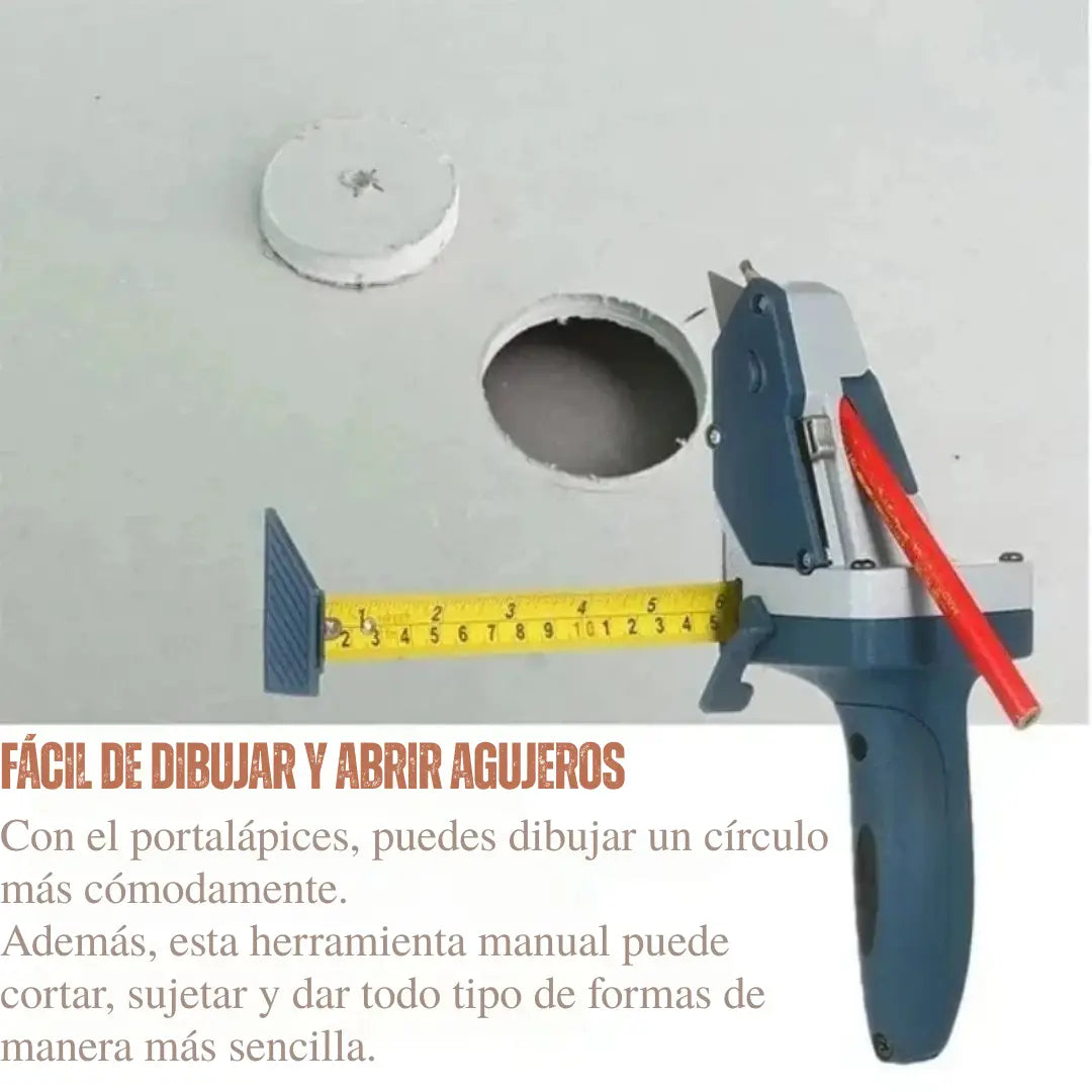 Tomas esta herramienta, mides, marcas y cortas... todo con una sola mano.Un corte perfecto en menos de 10 segundos.