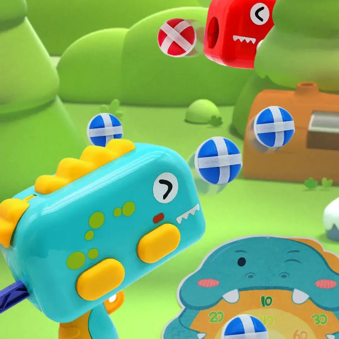 Imagina a tus pequeños aventureros explorando un mundo de juego interactivo con la pistola de dinosaurio y sus pelotas pegajosas.