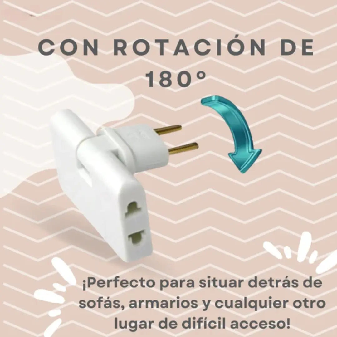 Olvídate de posturas incómodas y enchufes inaccesibles. Gracias a su diseño giratorio de 180°, este enchufe se ajusta al ángulo perfecto para que puedas conectar tus dispositivos sin esfuerzo.