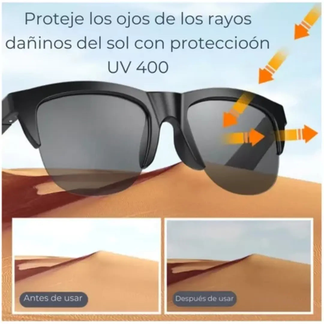 Imagina escuchar tu música favorita, atender llamadas sin auriculares y proteger tus ojos mientras luces increíble