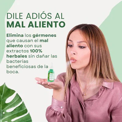 Descubre las GOTAS NATURALES PARA EL MAL ALIENTO , una loción no bebible que elimina bacterias y virus mientras humecta y protege tu cavidad bucal.