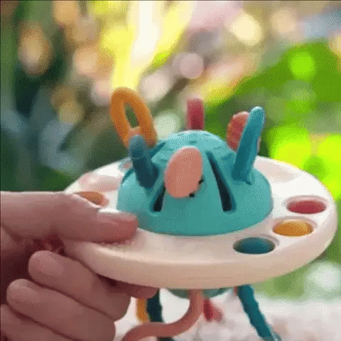 Este juguete de silicona para jalar en forma de pulpo tiene un diseño único que puede desarrollar las habilidades motoras y la percepción sensorial de los niños jalando hacia arriba y hacia abajo cuerdas de silicona y presionando y empujando botones. El juguete mantendrá al bebé ocupado y entretenido durante horas.