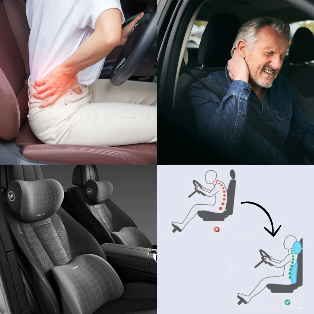 El tiempo prolongado en asientos incómodos puede provocar dolor en el cuello, espalda y hombros. Nuestro Soporte Lumbar y Cervical está diseñado para ofrecerte la mejor experiencia de comodidad, ya sea en tu coche, avión, tren o incluso en casa.