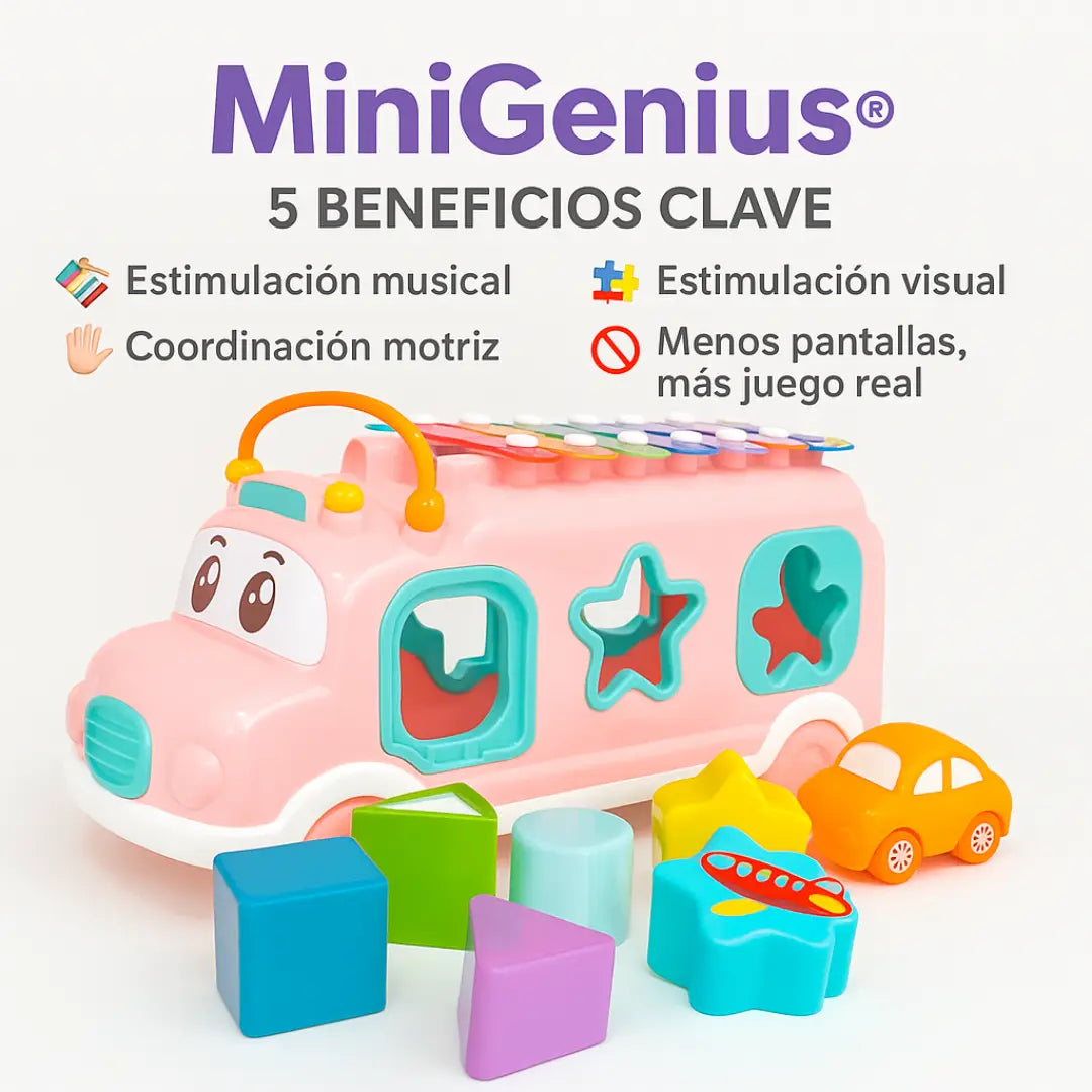 MiniGenius® no es un simple carrito con formas. Es una estación de estimulación temprana disfrazada de diversión:
