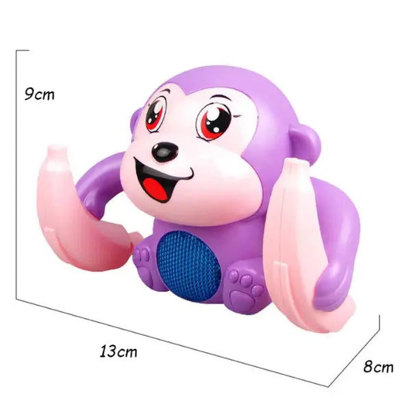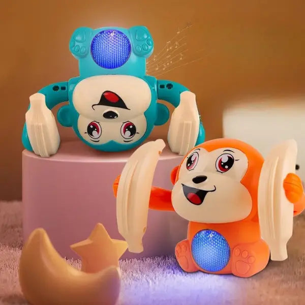 Cuando el mono se mueve y da volteretas, los niños intentan seguirlo, lo que incentiva el gateo, los primeros pasos y el movimiento activo. Este juguete ayuda a fortalecer músculos, mejorar la estabilidad y aumentar la confianza en su movilidad.