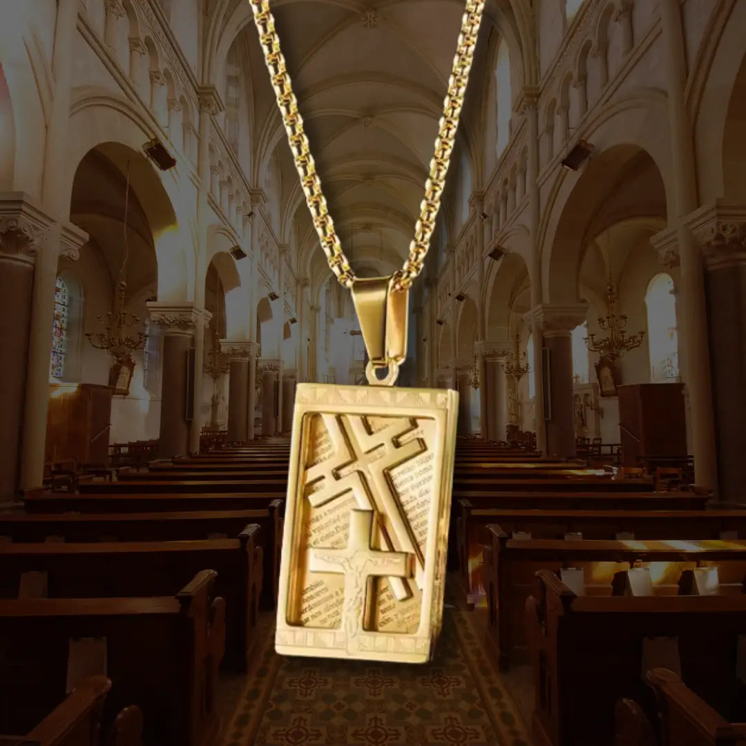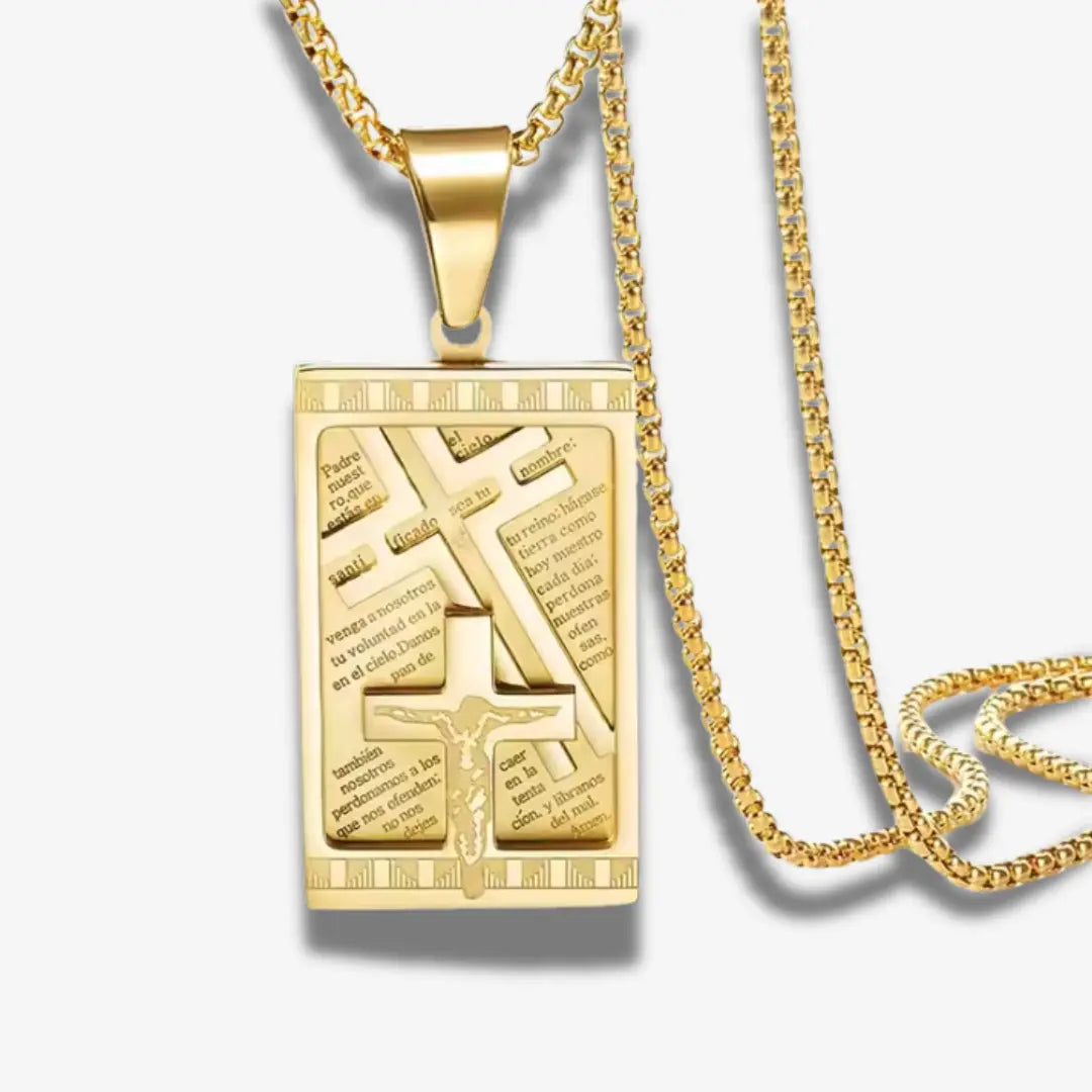 Este collar te asegurará que siempre estés bajo la protección del señor todopoderoso, se puede abrir para revelar las palabras del Padre Nuestro, grabados en las delicadas páginas.