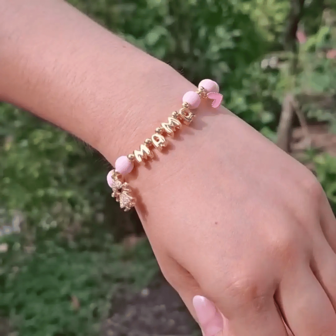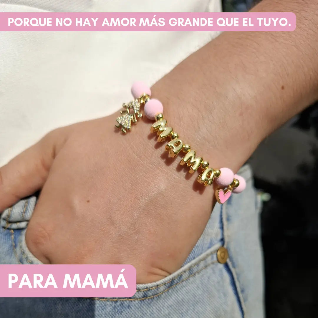 🔹 Nombre: Pulsera “MAMÁ” con charms