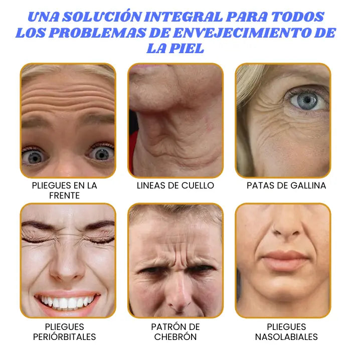 El colágeno, el ácido hialurónico y las ceramidas disminuyen con la edad, especialmente después de los 30 años. Esta disminución provoca arrugas, sequedad, tono desigual de la piel y pérdida de elasticidad Los párpados y los músculos faciales también comienzan a caer, y las arrugas en el cuello se vuelven más notorias, acelerando el proceso de envejecimiento.