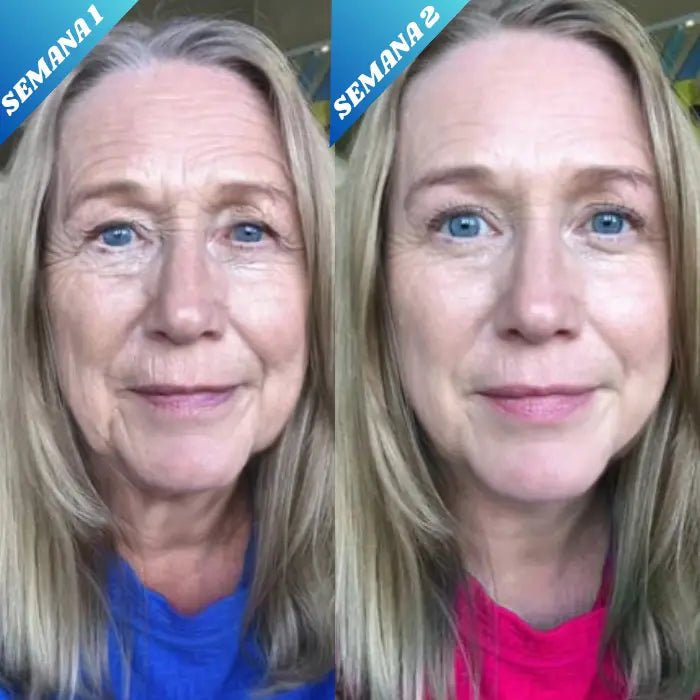 "¡Nunca he usado un serum que funcione tan bien y que ofrezca la mejor relación calidad- precio de todos mis productos para el cuidado de la piel; es mi producto favorito iEsta foto fue tomada después de 5 semanas de uso! No se nota la diferencia con mis amigos que son 20 años más jóvenes. Es como la fuente de la juventud, jajaja! La condición de mi piel ha cambiado dramáticamente. Me lo recomendó mi dermatólogo y me encanta que este sérum hace que mi piel sea elástica, las arrugas han desaparecido y mi piel está visiblemente "levanta" y menos grasa. Continuaré usándolo para restaurar mi piel a un estado más juvenil."
