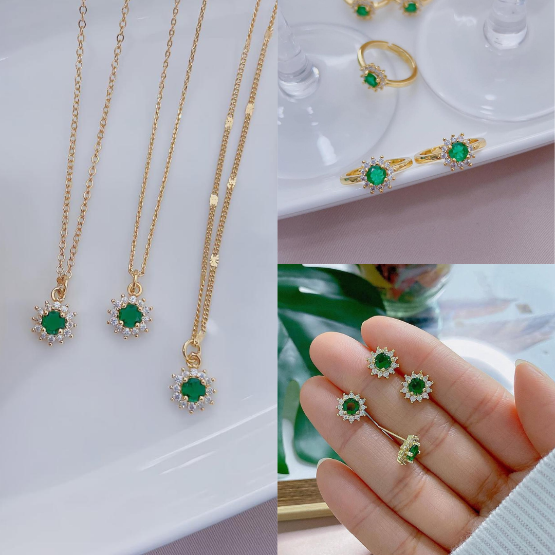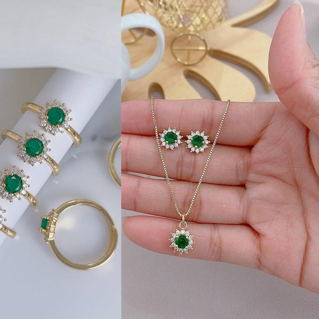 🟢Calidad premium: Covergold rodinado con doble baño de oro y circonitas verdes de alto brillo.