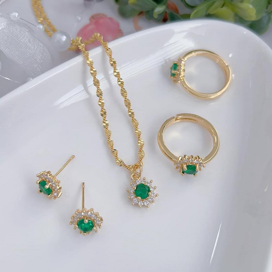 Imagina usar este set en tu próxima ocasión especial. Su brillo sutil y la tonalidad verde intensa harán que todas las miradas se posen en ti.