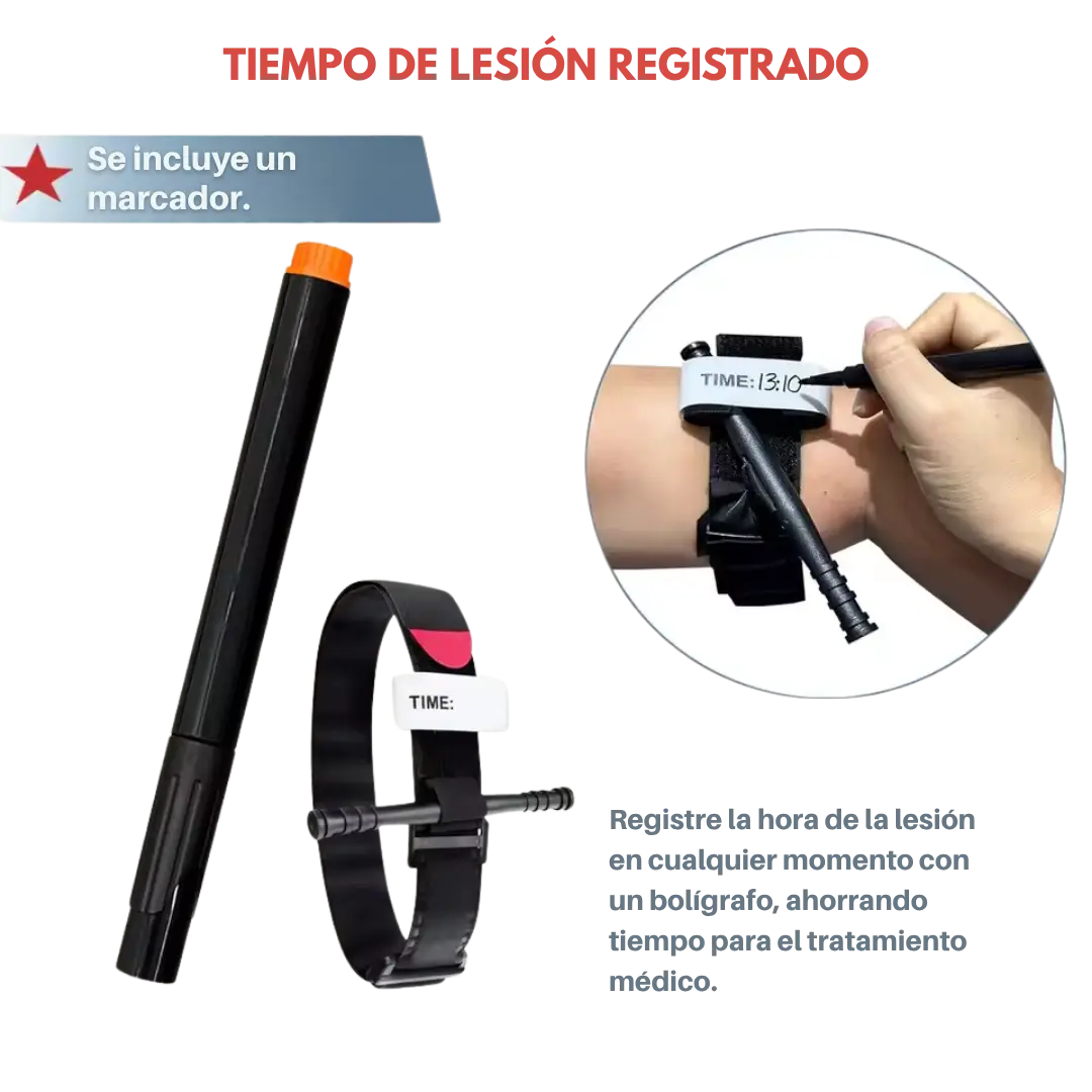 Su diseño táctico permite colocar el torniquete sin perder tiempo, incluso con guantes o manos temblorosas.