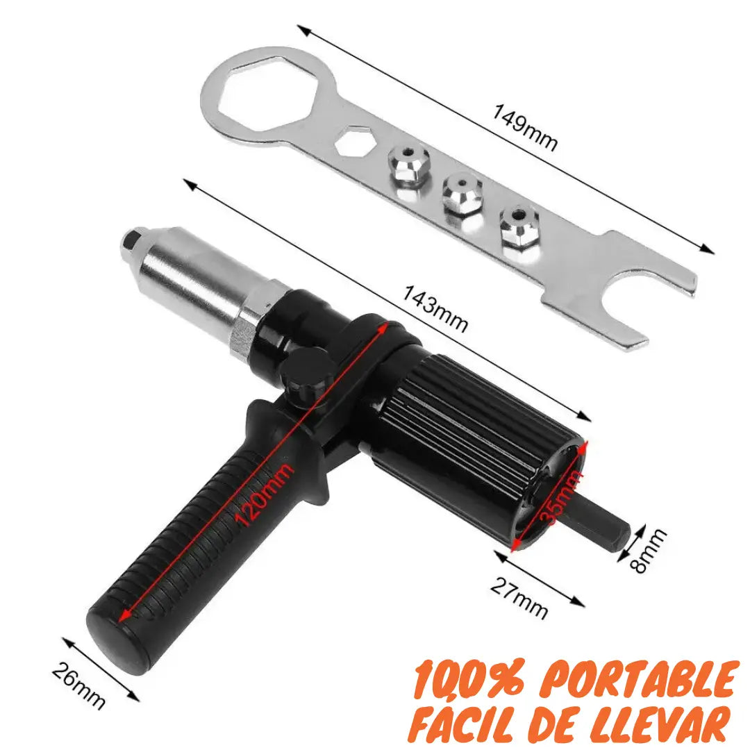 Convierte tu taladro en una potente remachadora, en segundos, más eficiente, más rápido, más fuerte.