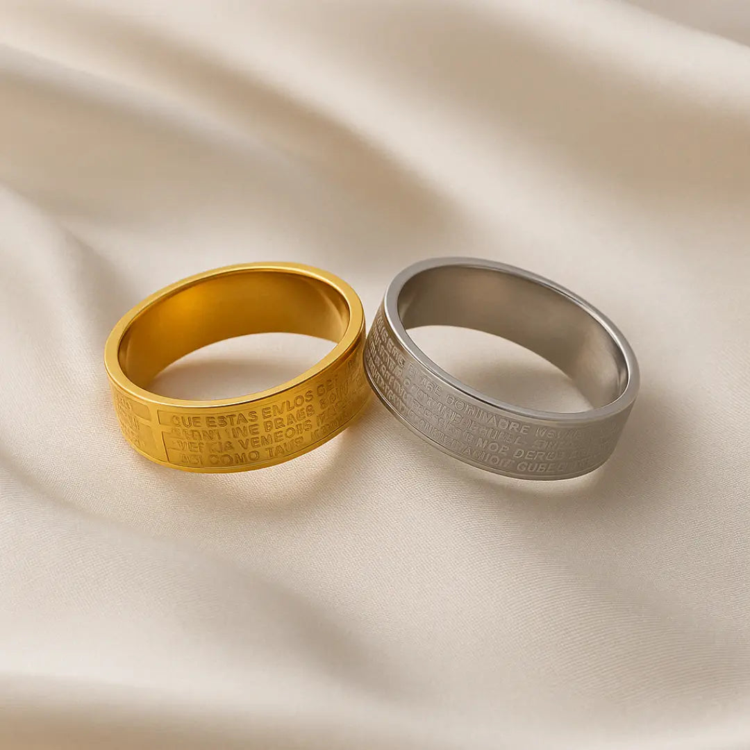 Anillo de Oración Padre Nuestro en Titanio – Fe Eterna®
